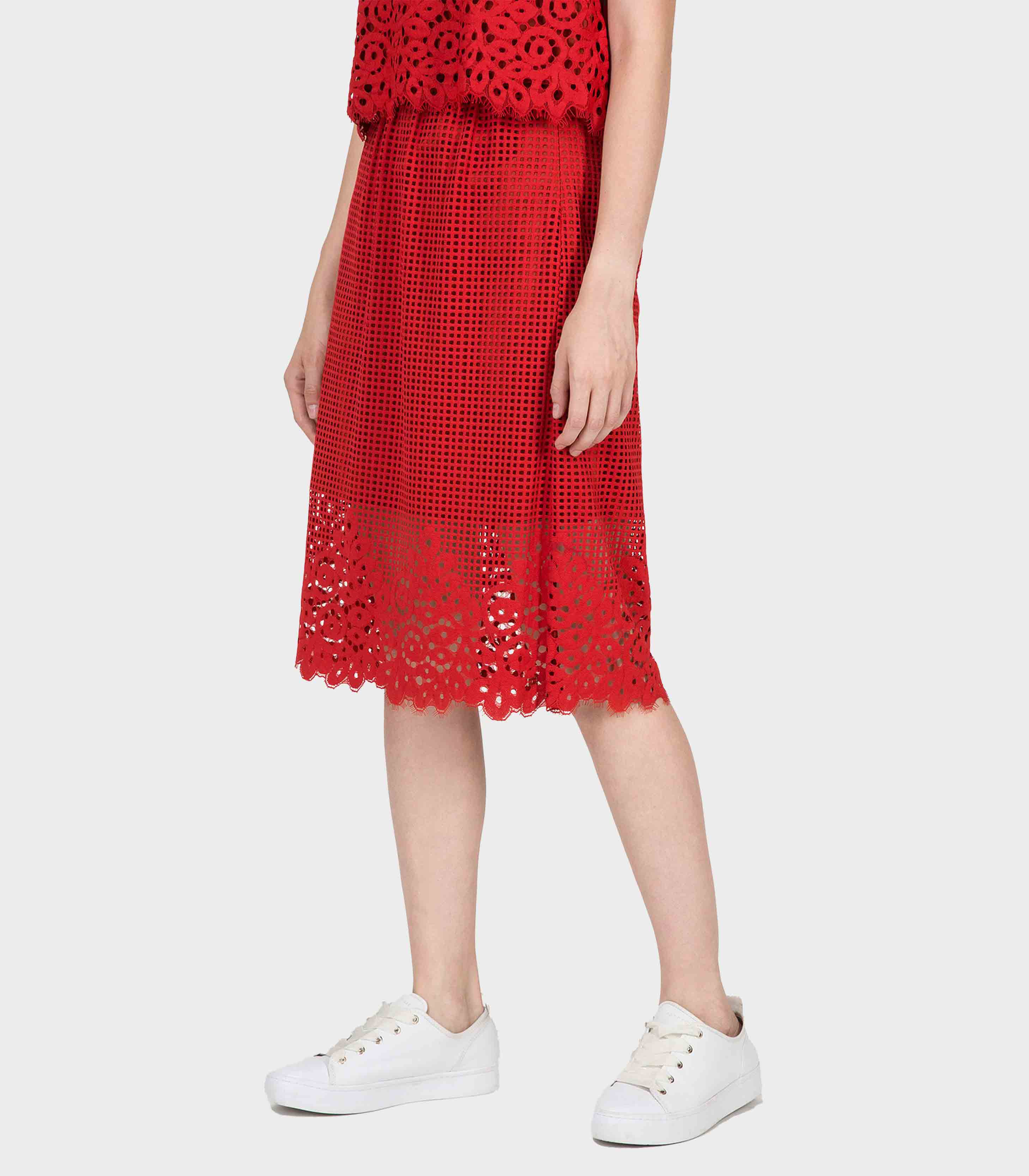 Tommy hilfiger - oc helena midi skirt , 4 , pompeian red , style ww0ww22213